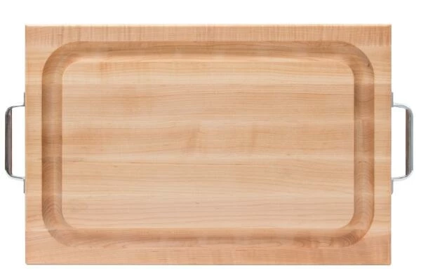 Boos Blocks Schneidebrett Prep2Serve aus Ahorn mit Edelstahlgriffen und Saftrille.
