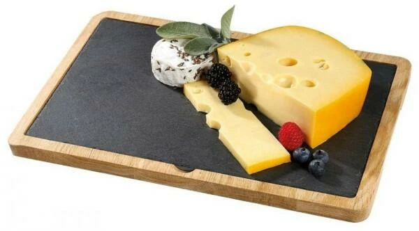 Cilio Servierbrett mit Schieferplatte Formaggio, rechteckig. Set bestehend aus Eichenholzbrett und Schieferplatte. Ideal zum Servieren verschiedener Käsesorten.