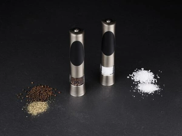 Das elektronische Mühlenset von Cole & Mason Richmond bietet eine elegante und zeitgemäße Möglichkeit, Ihre Speisen für diejenigen zu würzen, die elektronische Mühlen gegenüber manuellen Mühlen bevorzugen. Hergestellt aus hochwertigem Acryl und ABS mit einem modernen gebürsteten Chrom und schwarzem Finish, sind sie eine stilvolle Ergänzung für jede Küche oder jeden Tisch und dennoch ein unverzichtbares Küchenwerkzeug im Alltag. Um mit dem Mahlen zu beginnen, halten Sie einfach die Taste oben gedrückt und lassen Sie sie los, wenn Sie mit dem Würzen fertig sind. Stellen Sie den Mahlgrad mit dem Drehknopf am Fuß der Mühle von fein bis grob auf Ihr Gericht ein. Um die Mühlen zu füllen, drehen Sie einfach die Acrylmitte und die Oberseite aus gebürstetem Chrom, sodass das Vorhängeschlosssymbol mit dem Entriegelungssymbol ausgerichtet ist.
