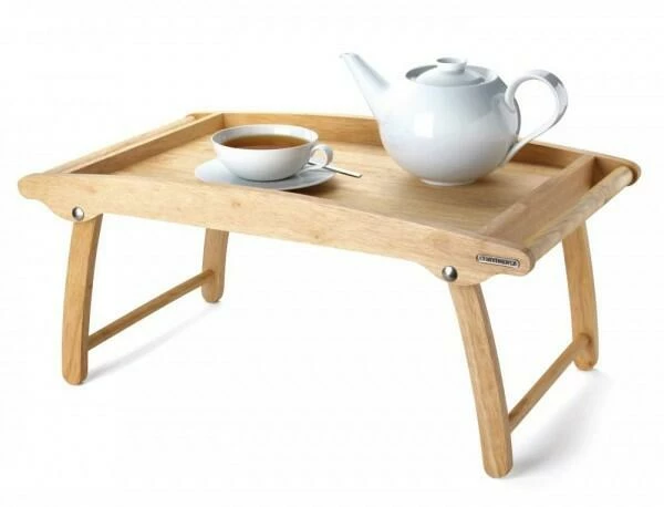 Tablett sehr stabil und trotzdem leicht. Der hohe Rand verhindert, dass lästige Krümmel ins Bett oder auf das Sofa fallen. Flach zusammengeklappt findet es in jeder Küche einen passenden Platz. Mit dem Betttablett können Genießer ihr Sonntagsfrühstück zelebrieren und abends leckere Snacks vor dem Fernseher knabbern.