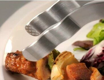 Grillzange. Die Grillzange garantiert mit der ausgewogenen Federkraft und der exakten Kraftübertragung auf die Enden der Zange eine optimale Handhabung am Grill oder bei Tisch. Durch die gewellten Enden der Zange wird das Grillgut sicher gehalten.