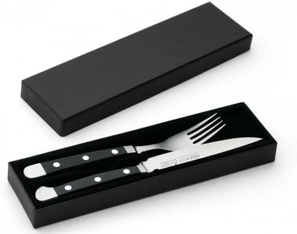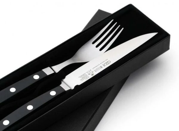 Steakmesser Alpha und 1 Güde Steakgabel Alpha im hochwertigen Geschenkkarton - Klingenlänge: 12 cm