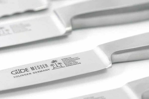 - Güde Messer niemals ungereinigt liegen lassen – besonders nach dem Umgang mit säurehaltigen Nahrungsmitteln.