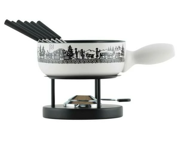 Dieses induktionstaugliche Caquelon überzeugt mit speziellem Design und hochwertiger Qualität. Das Dekor wurde exklusiv durch das Kuhn Rikon Designteam in der Schweiz entworfen. Das Scherenschnittdekor “Alpweide” lädt zum gemütlichen Fondueplausch ein.