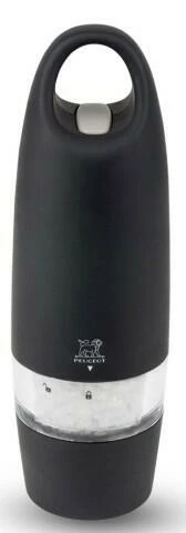 Salzmühle Zest elektrisch mit Soft-Touch in schwarz. Mahlen mit hohem Komfort und der gewohnten Schärfe eines PEUGEOT Mahlwerks. Mit den elektrischen Mühlen von PEUGEOT läßt sich das Mahlgut optimal dosieren.