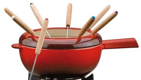 - Material: Fondue-Topf aus emailliertem Gusseisen