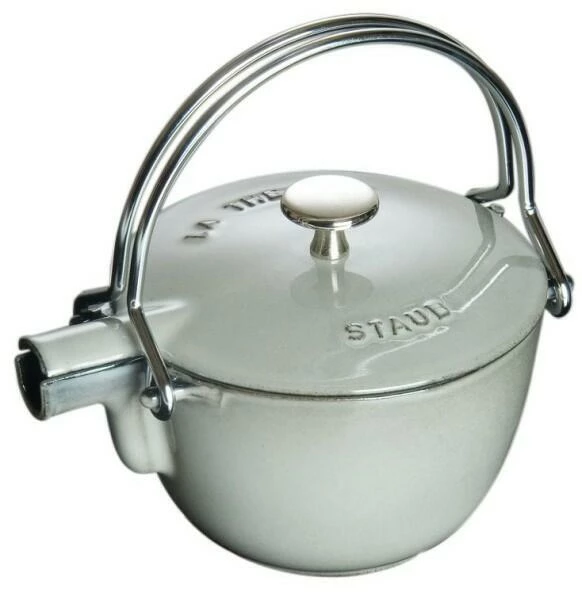 Staub Teekanne aus Gusseisen sieht nicht nur urig aus, sondern ist aus vielerlei Hinsicht äußert praktisch. Aufgrund der hervorragenden Wärmespeicherung von Gusseisen bleibt der Tee lange warm. Und da Gusseisen problemlos auf den Herd gestellt werden kann, kommt diese Kanne auch als Wasserkessel zum Einsatz.