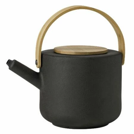 Stelton Teekanne Theo in schwarz, 1,25 Liter. Skandinavische Gemütlichkeit kommt mit der Teekanne aus Steingut auf. Mit Griff und Deckel aus Bambus.