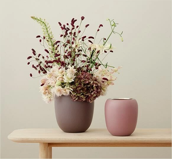 Die Ora Kollektion von Stelton wurde von dem italienischen Design-Duo Daniel Debiasi und Federico Sandri entworfen. Die Designobjekte fügen sich durch ihre organische Form harmonisch in jedes Ambiente. Der Kontrast zwischen der pulverbeschichteten, matten Außenseite und der glänzenden Innsenseite machen die Vase zu einem besonderen Hingucker. Ob für getrocknete oder frische Blumen, die Stelton Blumenvase ist immer ein dekorativer Blickfang.