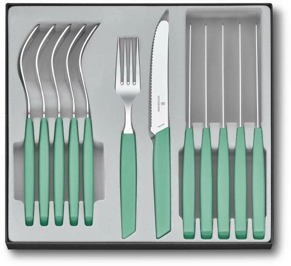 Victorinox Swiss Modern Besteck-Set, 12-teilig mit Tomatenmessern, minzgrün. Modernes Besteck für den alltäglichen und besonderen Gebrauch.