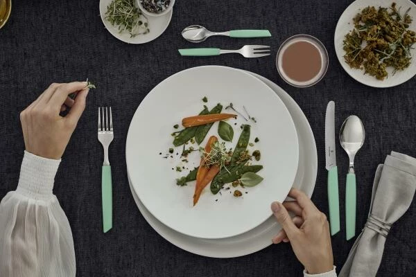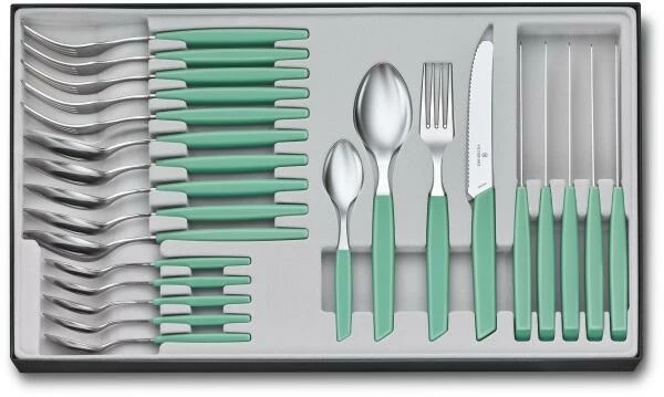 Victorinox Swiss Modern Besteck-Set mit Tomatenmessern, 24-teilig, minzgrün. Modernes Besteck für den alltäglichen und besonderen Gebrauch.