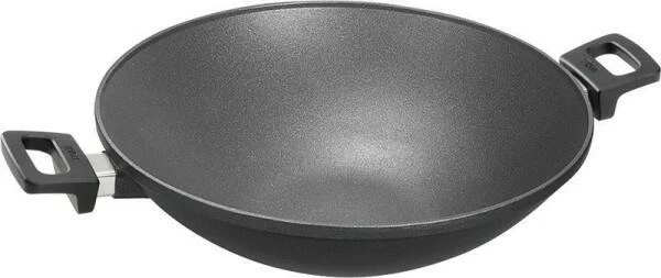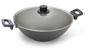 In dem robusten Wok aus Aluminiumguss mit zwei Seitengriffen wird die Hitze durch die tiefe und halbrunde Form gleichmäßig verteilt. Der Wok eignet sich besonders für das Garen von Gemüse und Fisch während des Pfannenrührens. Dabei werden die Zutaten unter ständigem Rühren kurzgebraten. Der Wok eignet sich ebenfalls zum Blanchieren und Schmoren.