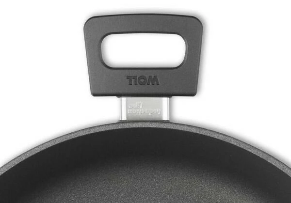 Die schnitt- und abriebfeste Hartgrundversiegelung ist mit hervorragenden Antihaft-Eigenschaften ausgestattet. Der Induktionsboden aus ferromagnetischem Spezialstahl ist ca. 9 mm dick und selbst bei hohen Temperaturen verzugsfrei. Die Seitengriffe sind ebenfalls hitzebeständig und im Backofen bis 250 °C einsetzbar.
