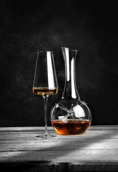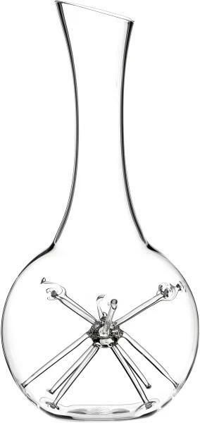 Der Dekanter Star mini eignet sich speziell für das Dekantieren von offenen Weinen oder kleinen Flaschen. Der Dekanter hat ein Fassungsvermögen von 0,7 Liter. Aber die ideale Füllmenge, um maximalen Sauerstoffkontakt zu garantieren beträgt 0,375 Liter. Die reduzierte Größe bietet die Möglichkeit, Weißweine zu dekantieren und dennoch in Weinkühlern zu temperieren. Auch für Dessertwein und die Inszenierung von innovativen High End Cocktails, aromatisierten Spirituosen bis hin zu exotischen Säften und vielem mehr ist dieses einzigartige Produkt geeignet. Während des Schwenkvorgangs wird durch die filigranen Strahlen des zentralen Sterns schonend ein feiner Sauerstofffilm unter den Wein gehoben und in ihm integriert. Dieser sorgt dafür, dass sich der Wein aus sich selbst heraus und nicht nur an der Oberfläche zu entwickeln beginnt.